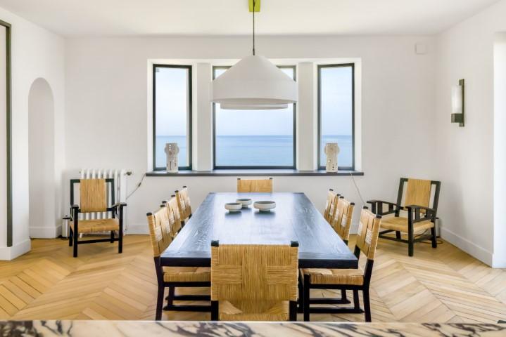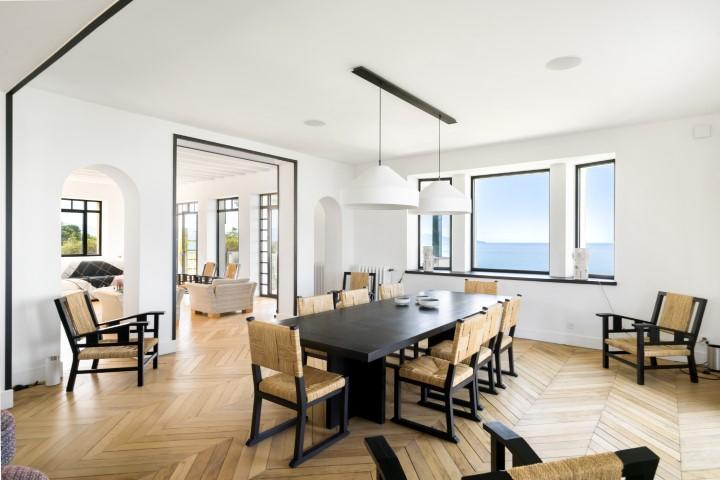 Pour accéder à la plage située en contrebas, il suffit de traverser la partie boisée de la propriété. Bâtie en 1923, la maison principale a bénéficié d'une rénovation complète en 2021, avec une attention rare portée aux détails.