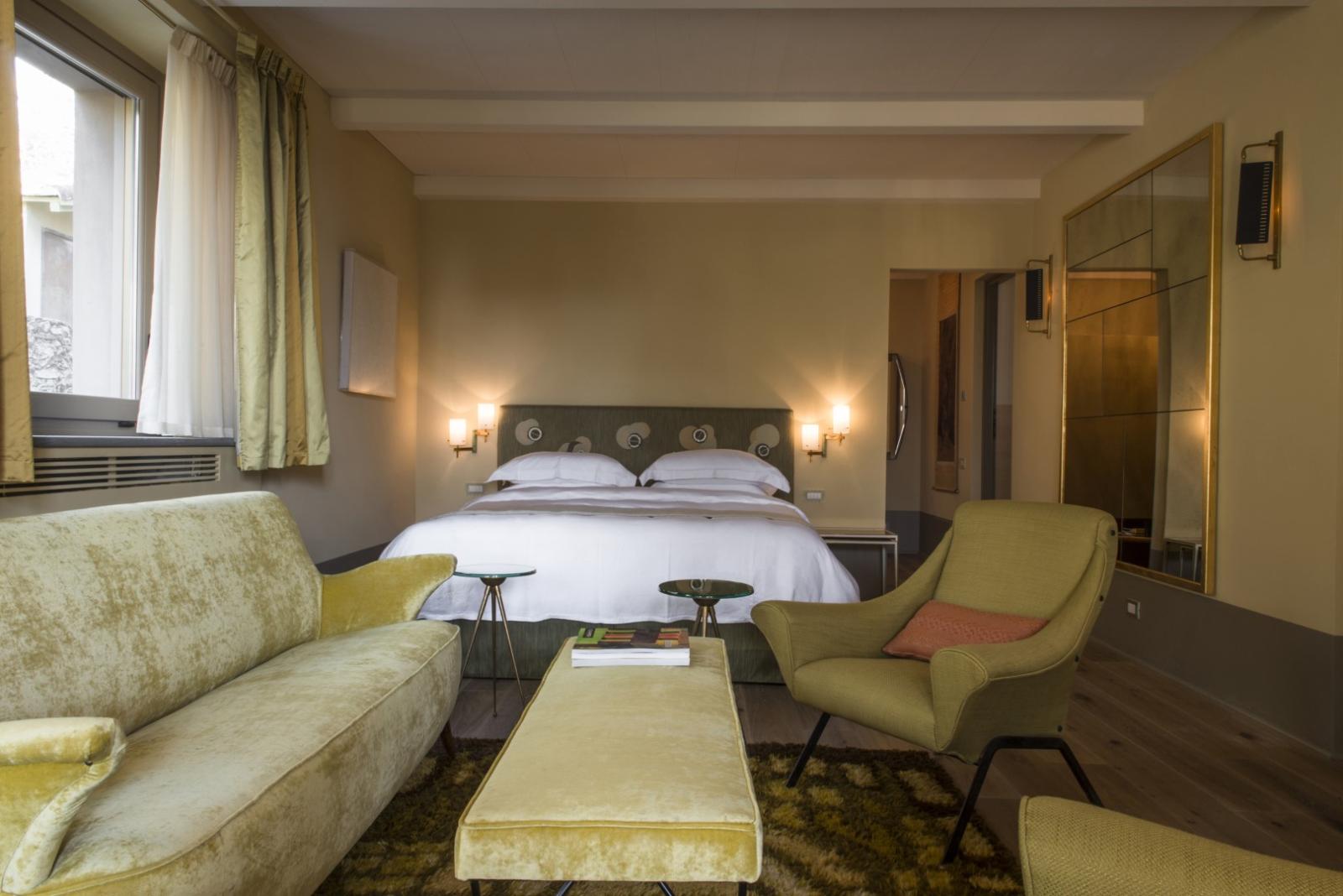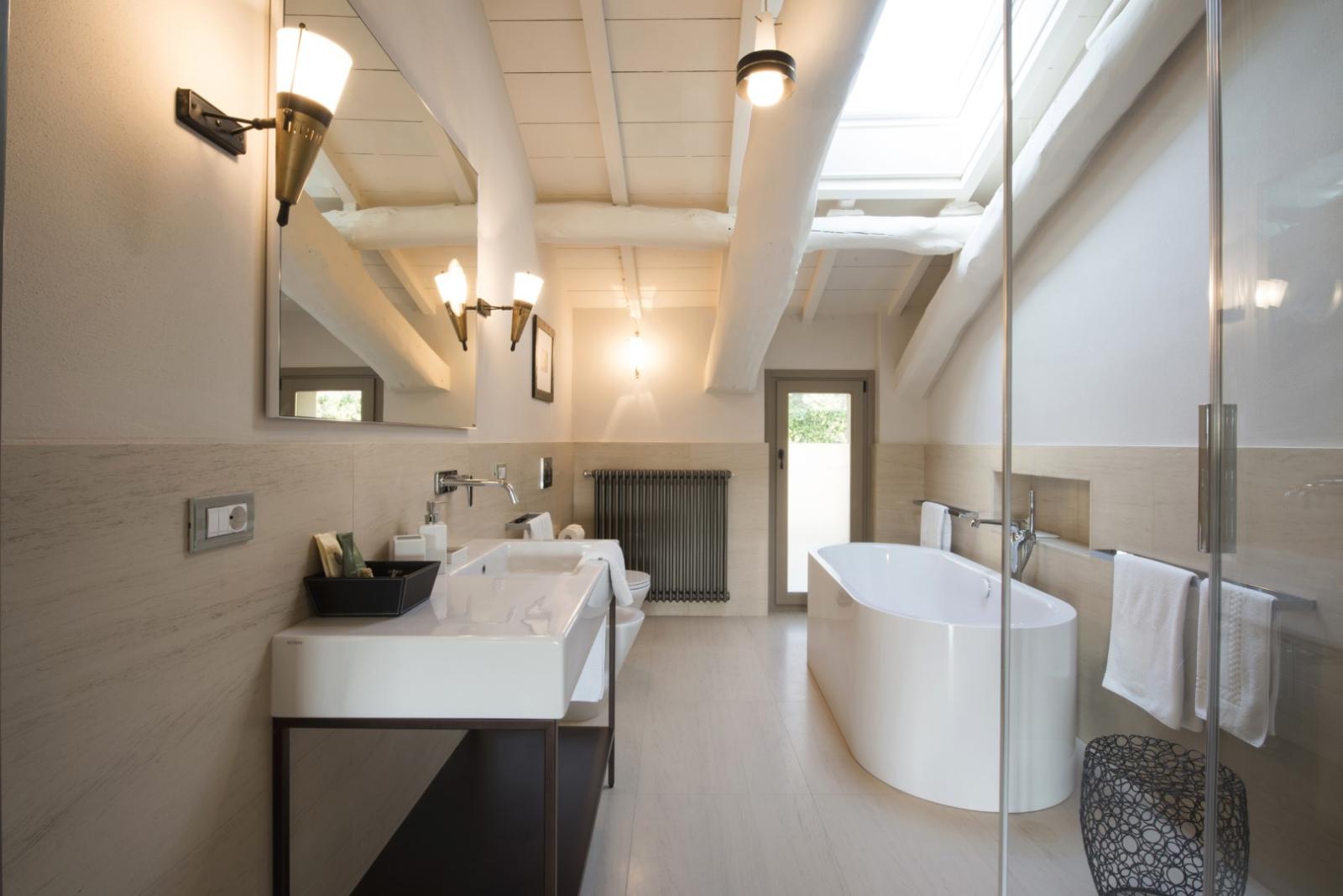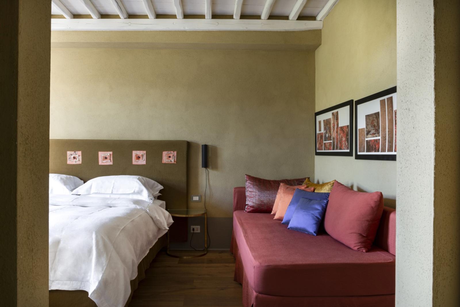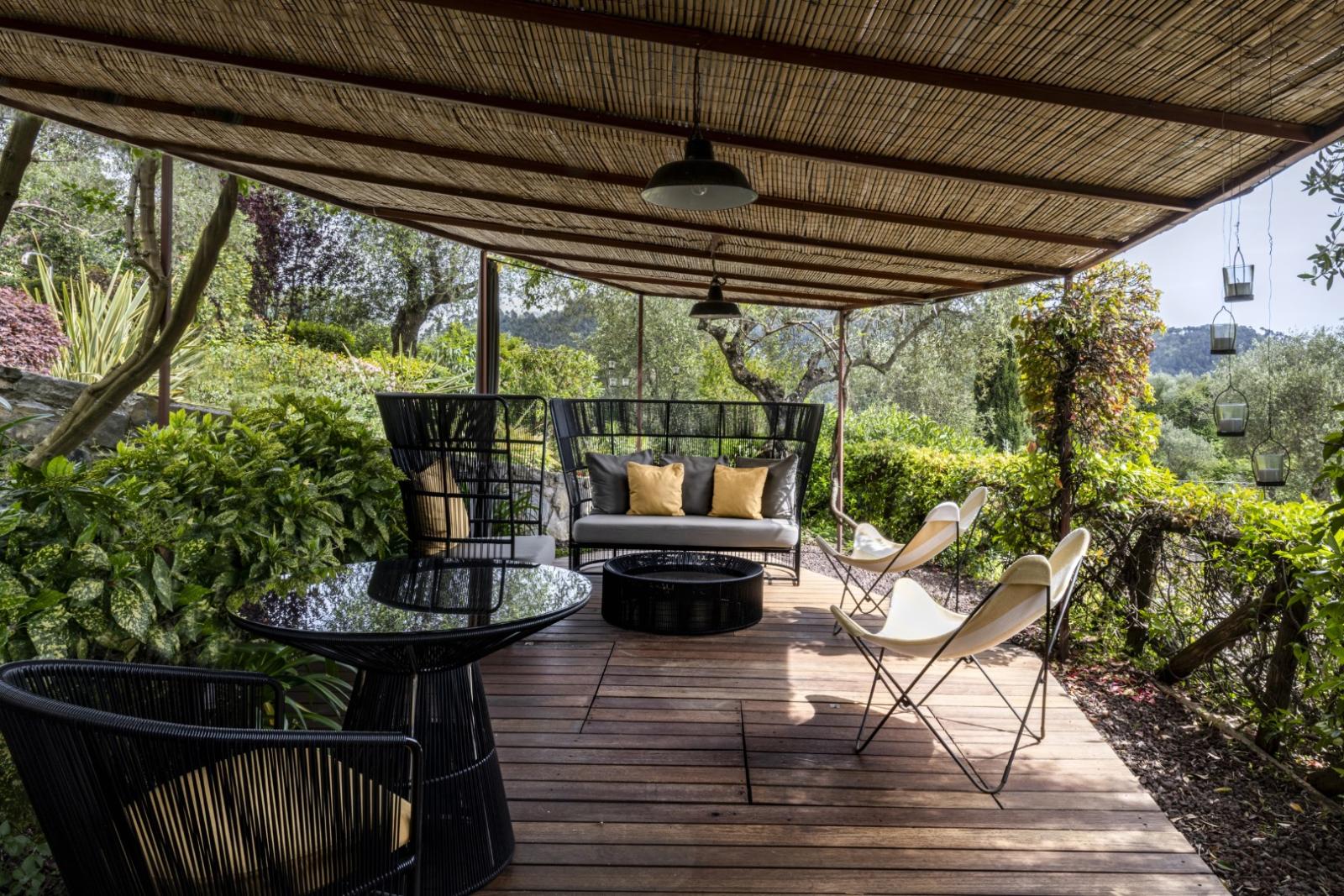Elle compte 12 chambres et suites, toutes meublées avec goût et caractère, alliant design contemporain, art et pièces anciennes. Les espaces communs comprennent des salons avec cheminée, des terrasses panoramiques, des jardins méditerranéens et une piscine d'eau salée chauffée entourée d'oliviers.