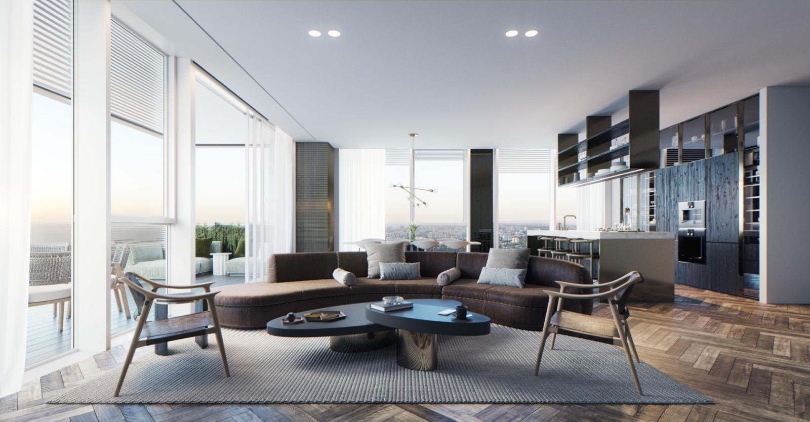 Each apartment is designed with exceptional attention to detail, featuring high ceilings, floor-to-ceiling windows, designer kitchens, and spacious balconies offering breathtaking views of the sea and the city.