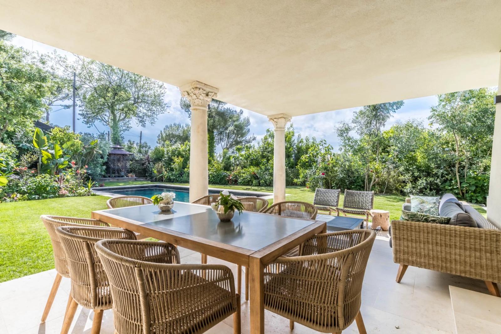 Co-exclusivité Le Cannet : Superbe villa provençale avec beaucoup de charme, entièrement rénovée avec goût, disposant d'une belle vue dégagée sur les collines, exposée Ouest. Elle se compose sur 350 m2 d'un double séjour avec cheminée, d'une salle-à-manger, d'une cuisine ouverte équipée, d'une très belle chambre de maitre de plain pied en suite avec dressing et terrasse. A l'étage, 2 chambres en suite avec coin bureau. En rez de jardin, une deuxième chambre de maitre en suite avec dressing, salon d'été ou chambre avec salle de douche, cuisine d'été, cave à vin. Terrain de 1500m2 avec bel espace piscine, fontaines, parkings pour 5 voitures. Studio indépendant entièrement équipé. A voir absolument!