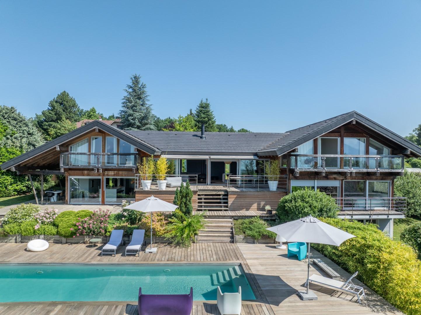 Idéalement située sur l'axe Annecy-Genève, dans un environnement préservé et résidentiel, cette villa contemporaine à l'architecture élégante offre un cadre de vie rare, orienté plein sud et sublimé par une vue panoramique sur le lac d’Annecy et les montagnes environnantes.