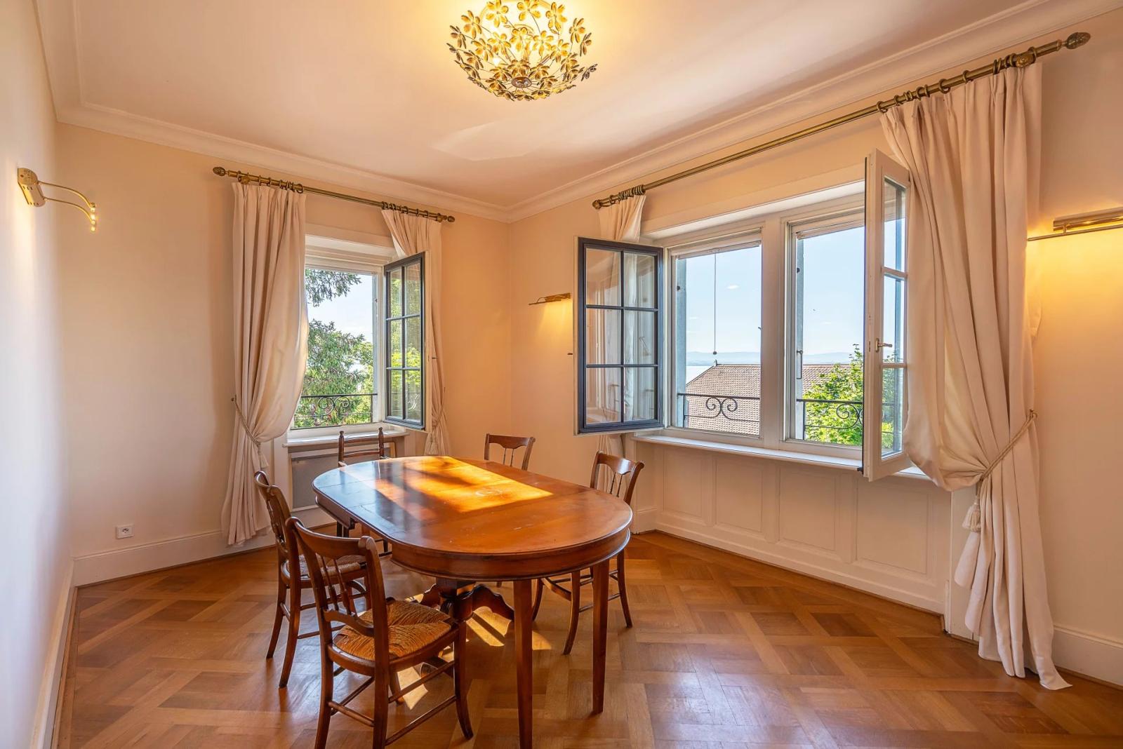 Situé à 10 minutes d'Évian-les-Bains, à l’extrême ouest du château historique avec une entrée indépendante, ce bel appartement de 190 m² en excellent état offre des prestations de qualité.