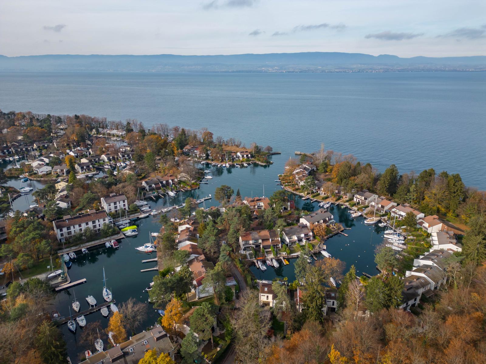 Située dans le domaine privé de Port Ripaille, en bordure du lac Léman, cette maison d’angle de 54 m² bénéficie d’un emplacement privilégié avec un espace d’amarrage rare.
