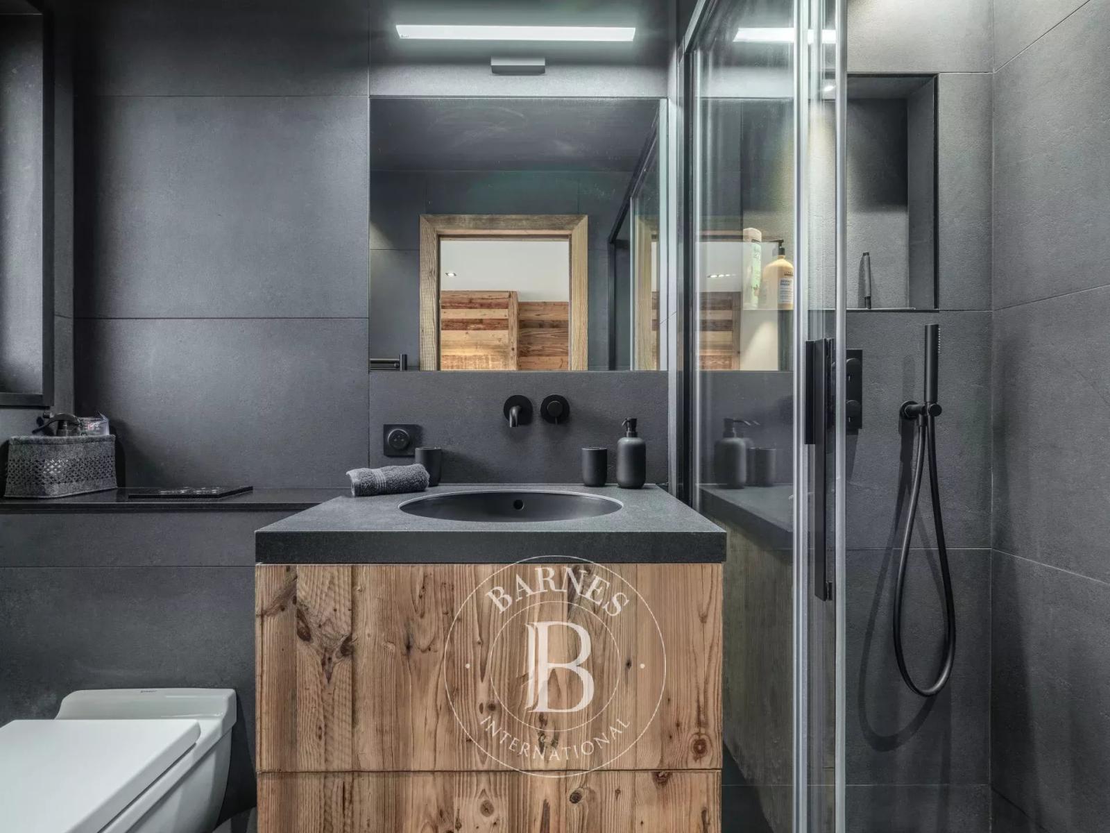 Le rez-de-chaussée comprend un garage, un local à skis avec sèche-chaussures, une buanderie et trois chambres en suite avec accès à la terrasse.