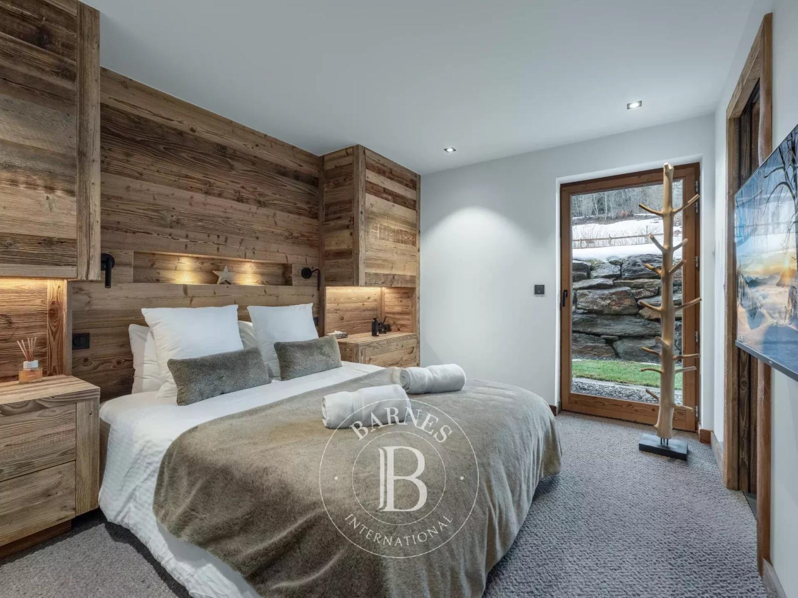 L’étage supérieur est dédié à la suite parentale avec dressing, salle de bain, balcon privatif et coin TV, offrant un véritable refuge exclusif face aux sommets.