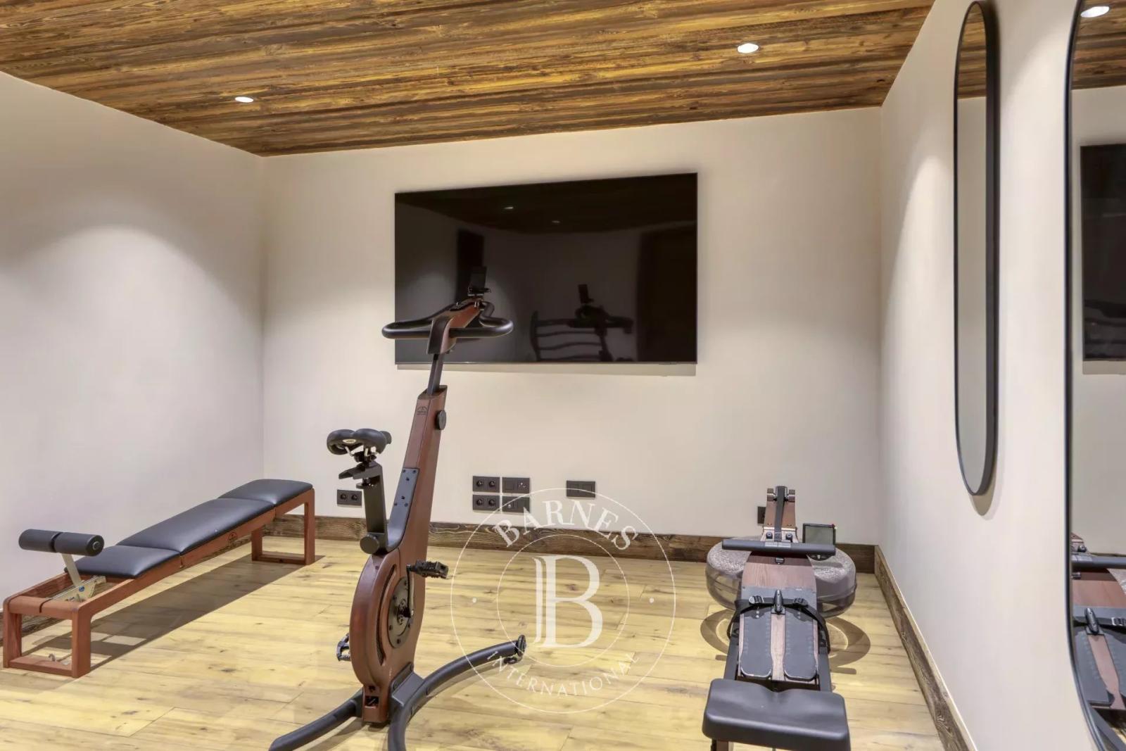 Cette propriété comprend un sous-sol avec une salle de fitness, une salle de massage, une salle télévision et une chambre de staff.