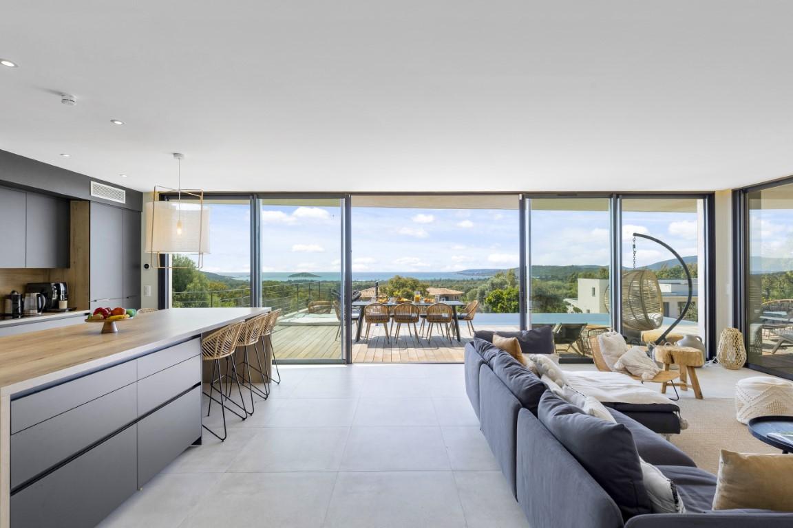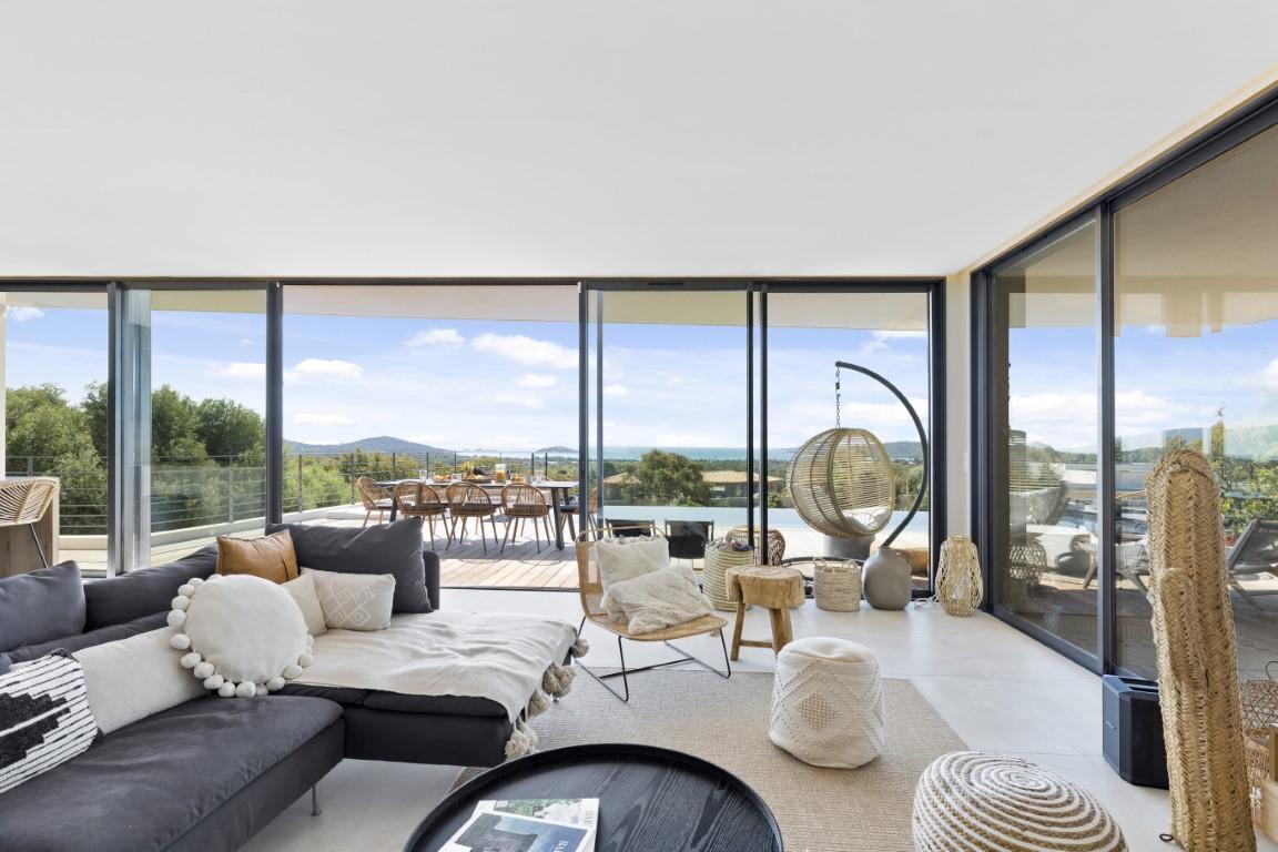 Proche des plages prisées de Saint Cyprien et Cala Rossa, cette villa d’architecte d’environ 172 m² offre une vue spectaculaire sur la mer.