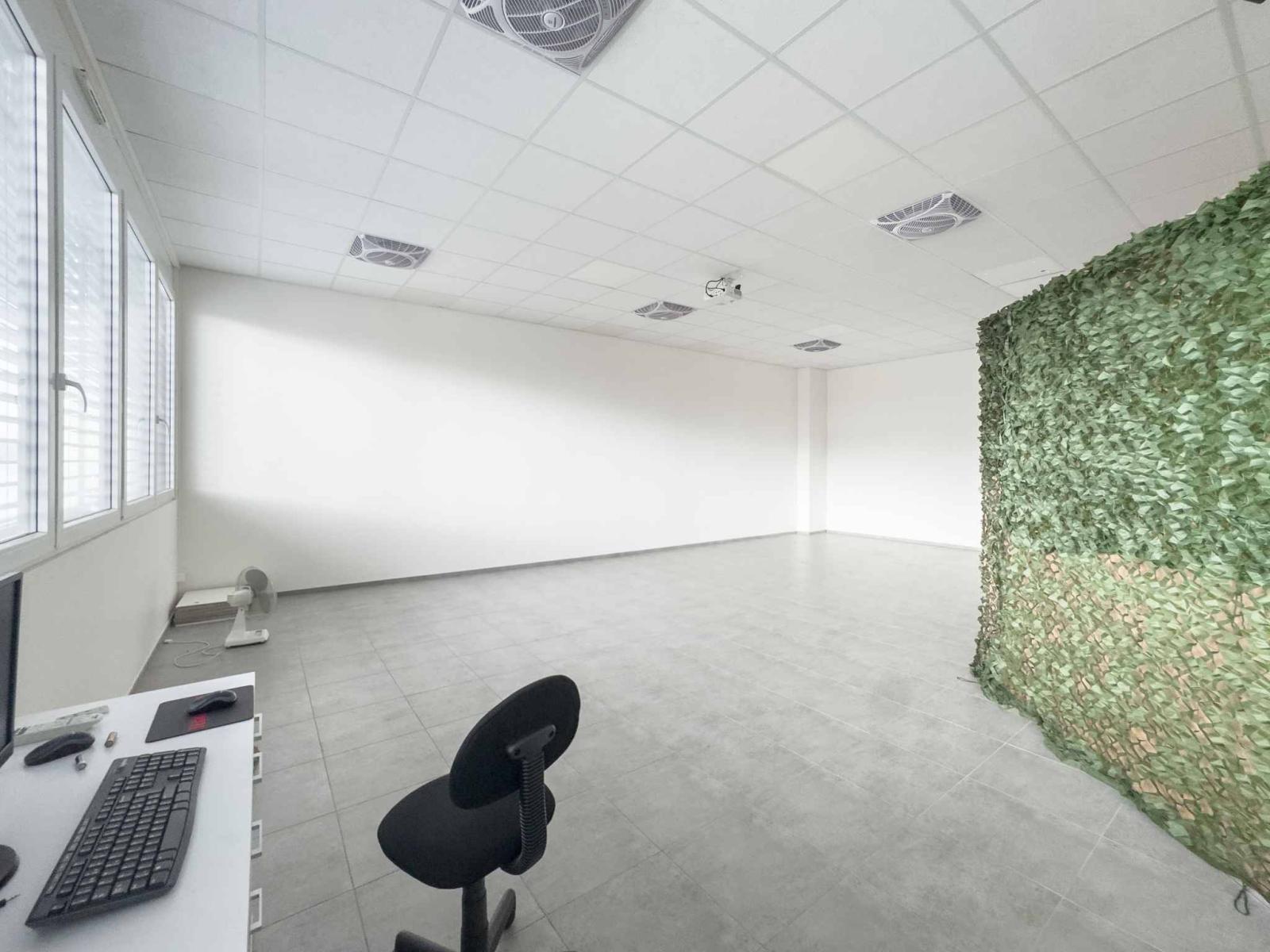 Pour assurer un environnement de travail agréable tout au long de l’année, le bureau est doté de ventilateurs intégrés au faux plafond, garantissant un rafraîchissement efficace des locaux.