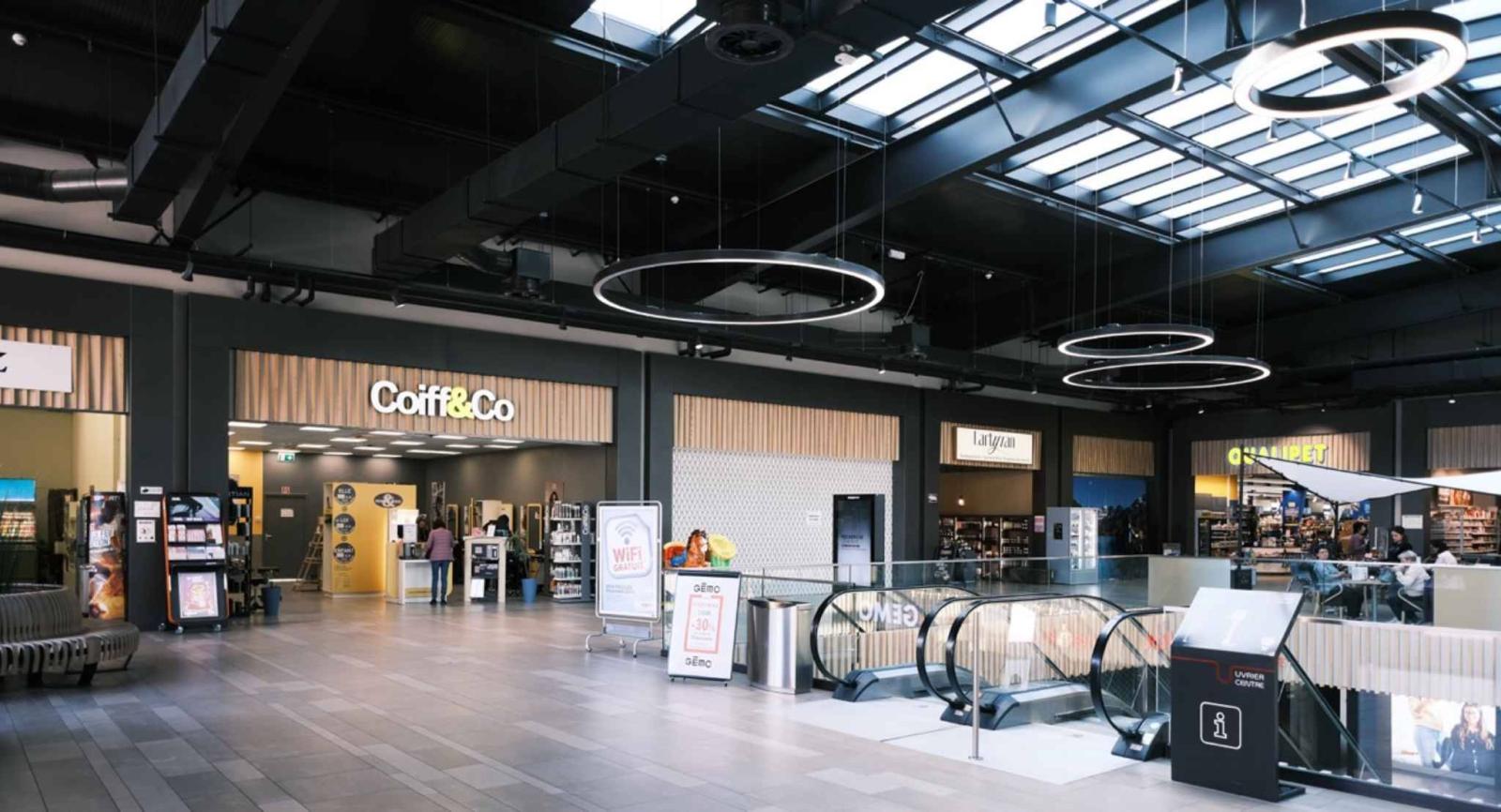 Récemment rénové, le Centre Commercial d'Uvrier dispose d’espaces bien agencés, permettant une circulation fluide et agréable. Les grandes vitrines des magasins, ainsi que les zones de repos, contribuent à créer une atmosphère conviviale et accueillante.