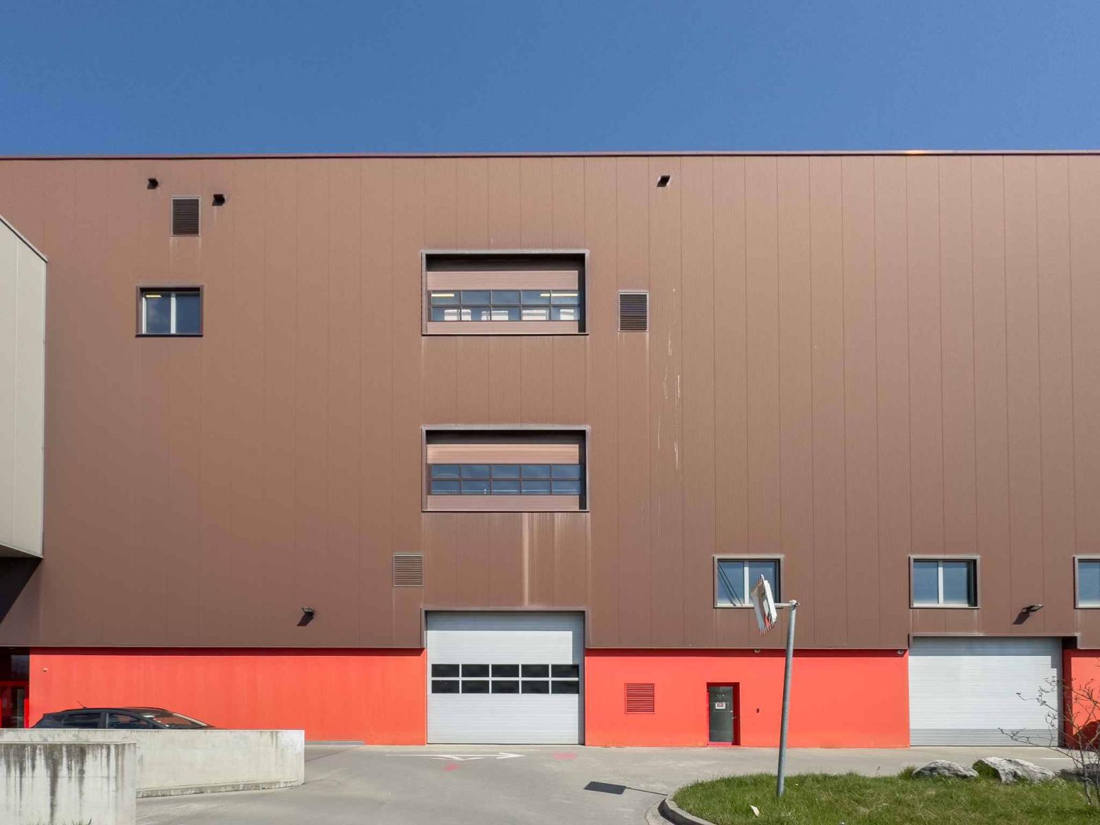 - Porte sectionnelle sur la façade permettant un accès direct depuis l’extérieur, adaptée aux grands volumes (containers, machines industrielles, etc.).