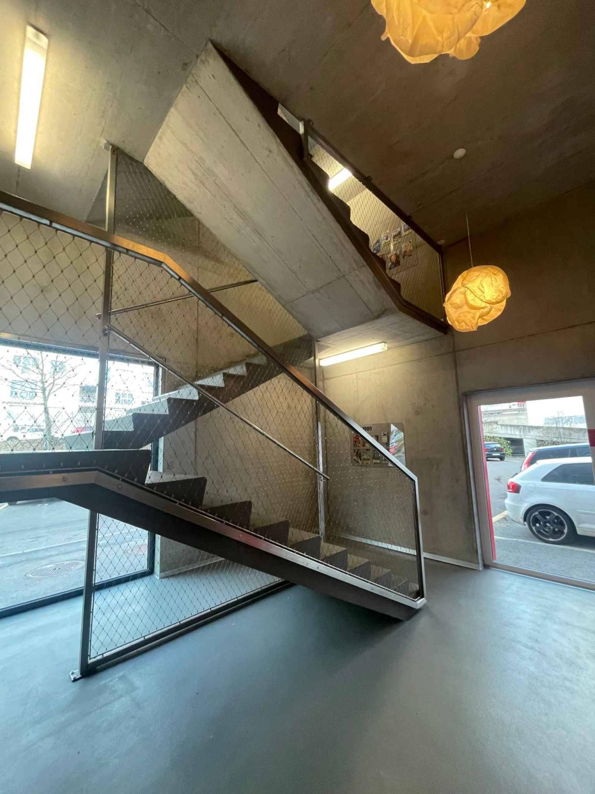 Les locaux sont aménagés dans une structure porteuse principale en profilés de métal et dalles mixtes. L’isolation et les menuiseries extérieures répondent aux critères de haute performance, avec des façades ventilées bardées en fibrociment, verre et métal.